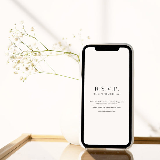 The invitation is designed for mobile viewing and can be downloaded to share via text, email, or alongside your own wedding website.