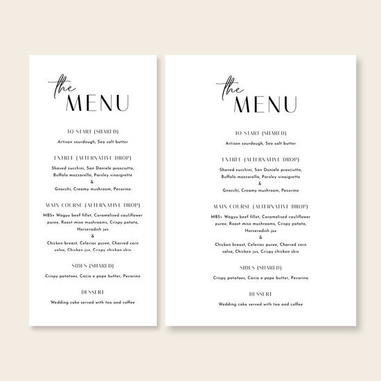- Editable A5 (148mm x 210mm) template — A slightly larger option, ideal if your menu includes multiple courses or detailed descriptions.