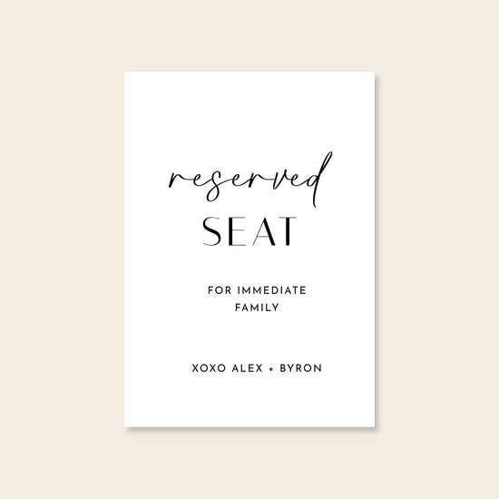 This editable reserved sign template is a simple way to mark seats or tables for family, guests of honour, or anyone you want to reserve a space for.