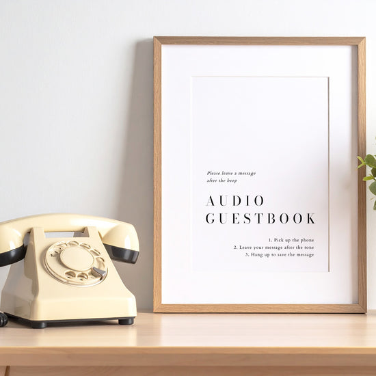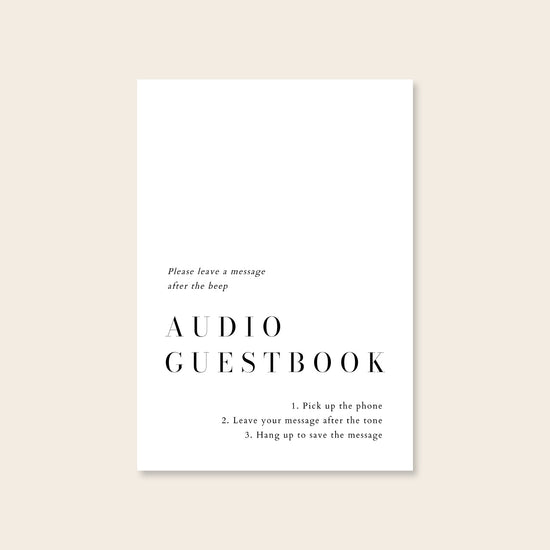 This editable audio guestbook sign template is the perfect way to guide your guests to leave heartfelt voice messages on your audio guestbook. A stylish, modern way to preserve personal moments and well wishes from your special day.