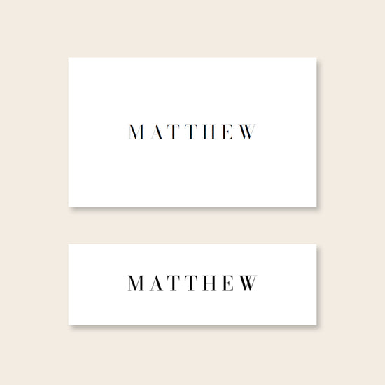 - Editable 90mm x 30mm flat place card template – A modern, minimalist size that’s perfect for personalising your menus.