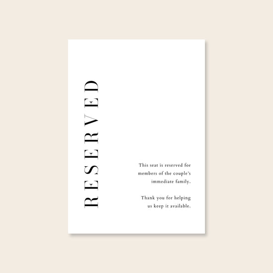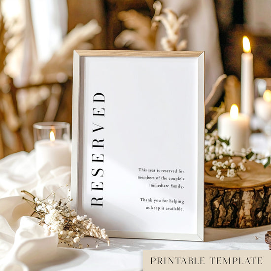 This editable reserved sign template is a simple way to mark seats or tables for family, guests of honour, or anyone you want to reserve a space for.