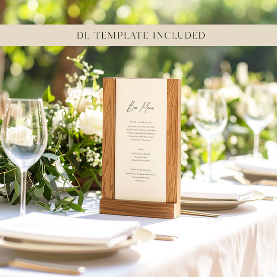 - Editable DL (99mm x 210mm) template – Perfect for placing on individual cocktail tables or at the bar for a sleek, space-saving drinks menu.