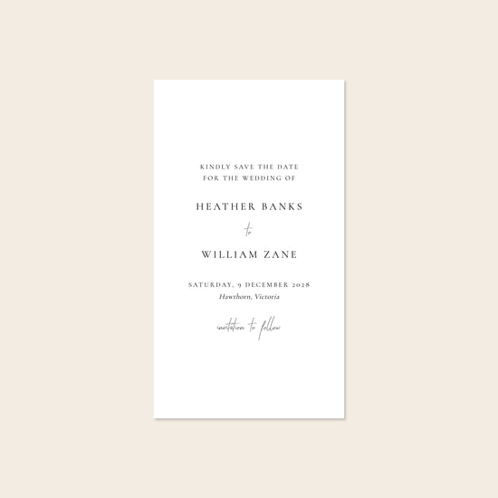 Claremont is all about quiet confidence and understated elegance. Inspired by warm coastal breezes and soft linen tailoring, this design pairs structured typography with modern script to create a refined, contemporary suite. It’s perfectly suited to sunlit ceremonies, classic receptions, and modern venues with timeless character.