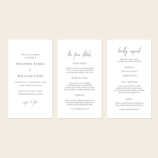 This editable digital invitation template set includes the main invite, matching details and RSVP pages, plus ten extra blank pages for any additional information you’d like to include.