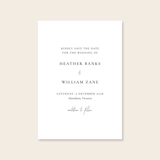 Claremont is all about quiet confidence and understated elegance. Inspired by warm coastal breezes and soft linen tailoring, this design pairs structured typography with modern script to create a refined, contemporary suite. It’s perfectly suited to sunlit ceremonies, classic receptions, and modern venues with timeless character.