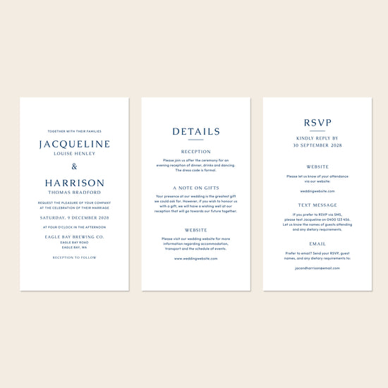 This editable digital invitation template set includes the main invite, matching details and RSVP pages, plus ten extra blank pages for any additional information you’d like to include.