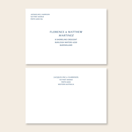 This printable template includes both front and return address layouts, making it easy to add a refined touch to your envelopes. Whether you're printing at home or through a professional service, the template is sized for popular envelope sizes from our favourite suppliers, MOO and Peterkin.