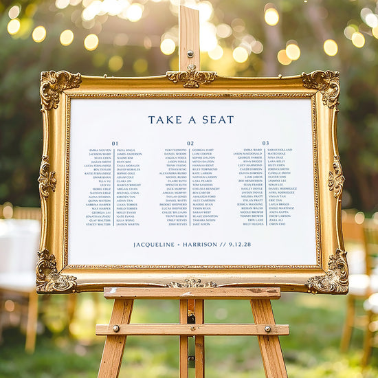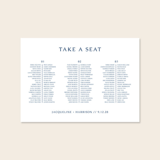 Perfect for banquet or long table receptions, this seating chart template displays guest names neatly on either side of the table for a stylish, easy-to-read format.