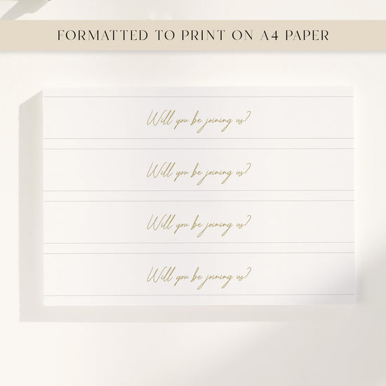 This invitation belly band template is formatted to print on standard A4 paper and is easy to personalise and print at home.