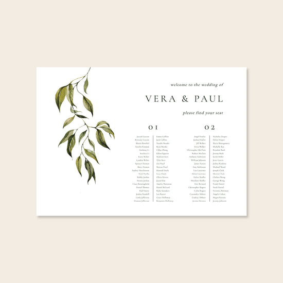 Evergreen Wedding Seating Chart Template (Long Tables) (Horizontal)