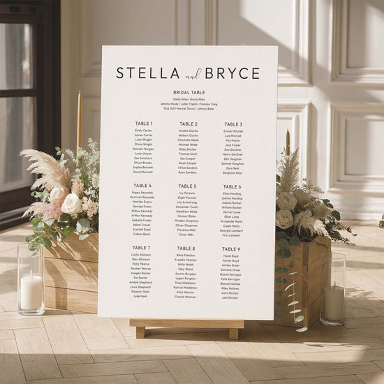Easily design your own wedding seating chart in just a few clicks with this A1 and A2 template.