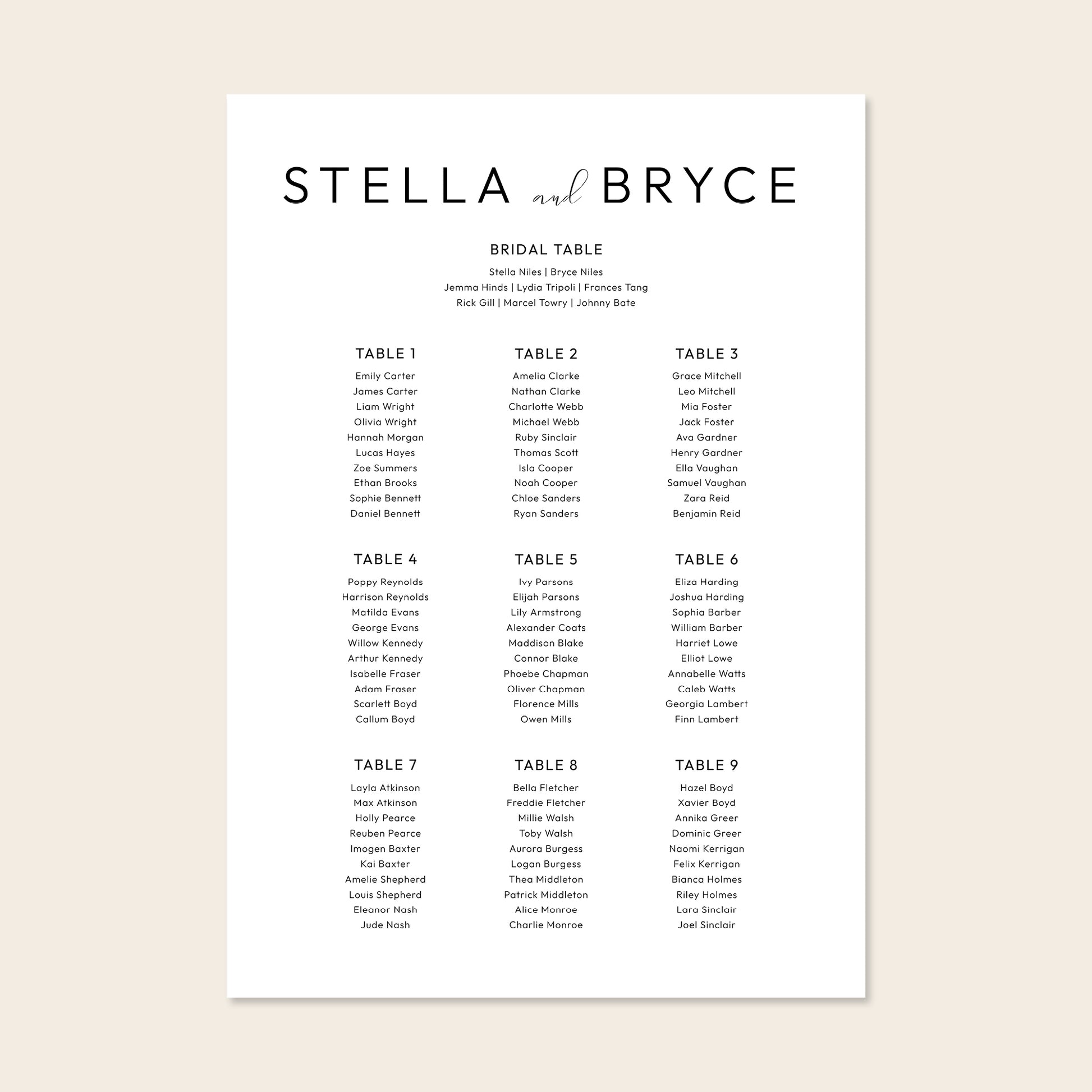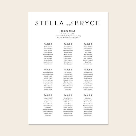 Harbour 9-Table Wedding Seating Chart Template