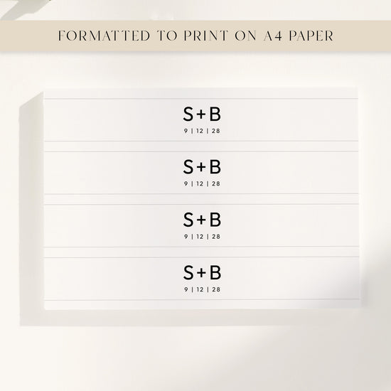 This invitation belly band template is formatted to print on standard A4 paper and is easy to personalise and print at home.