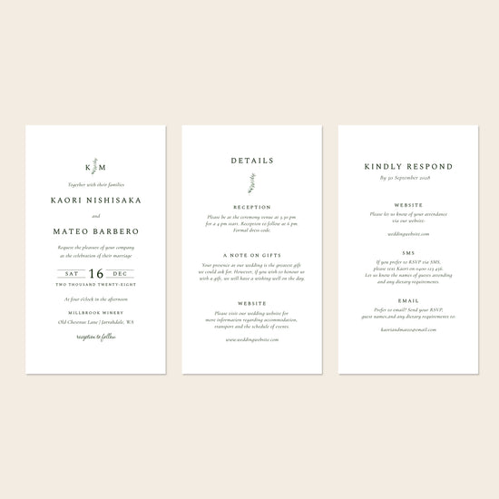 This editable digital invitation template set includes the main invite, matching details and RSVP pages, plus ten extra blank pages for any additional information you’d like to include.