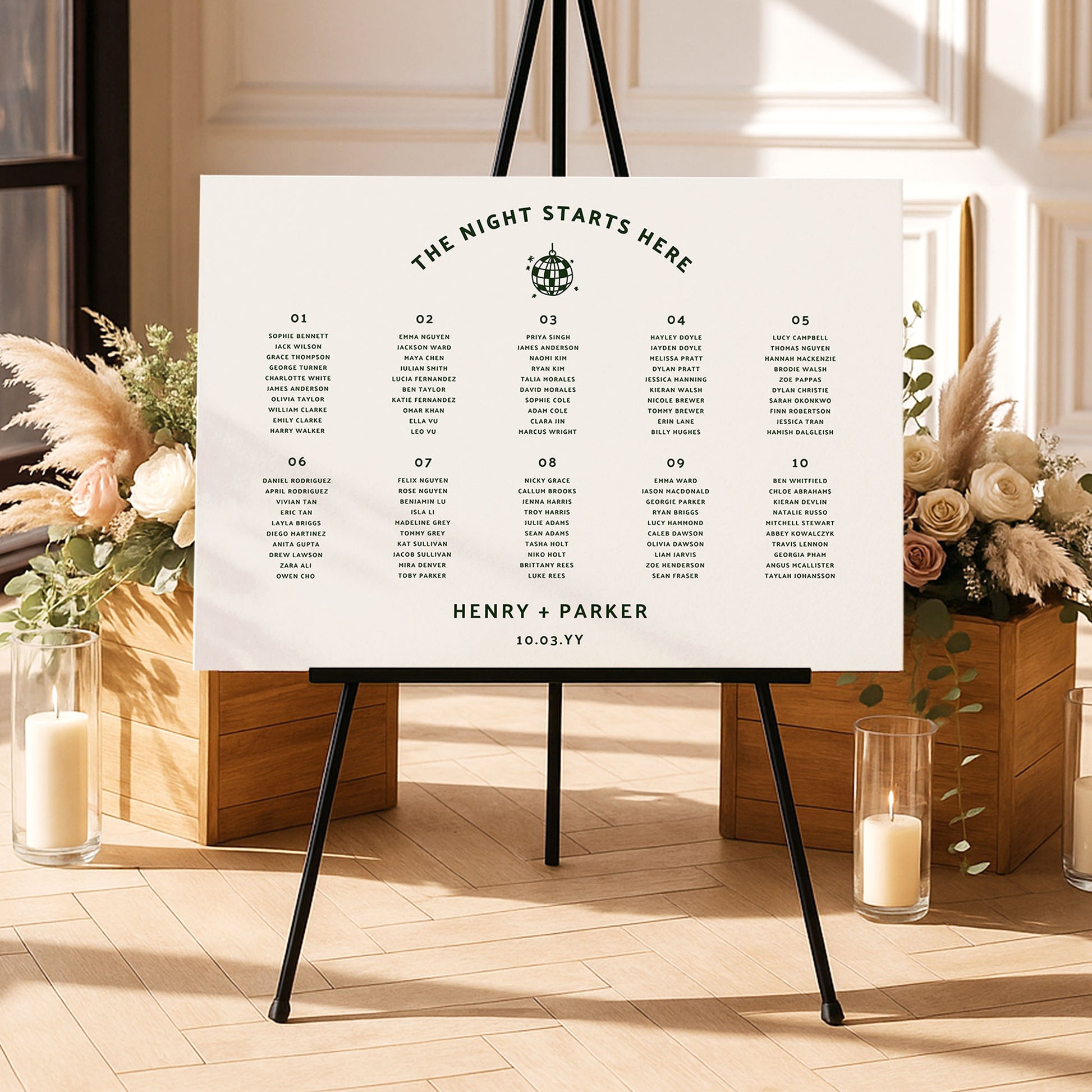Easily design your own wedding seating chart in just a few clicks with this A1 and A2 template.