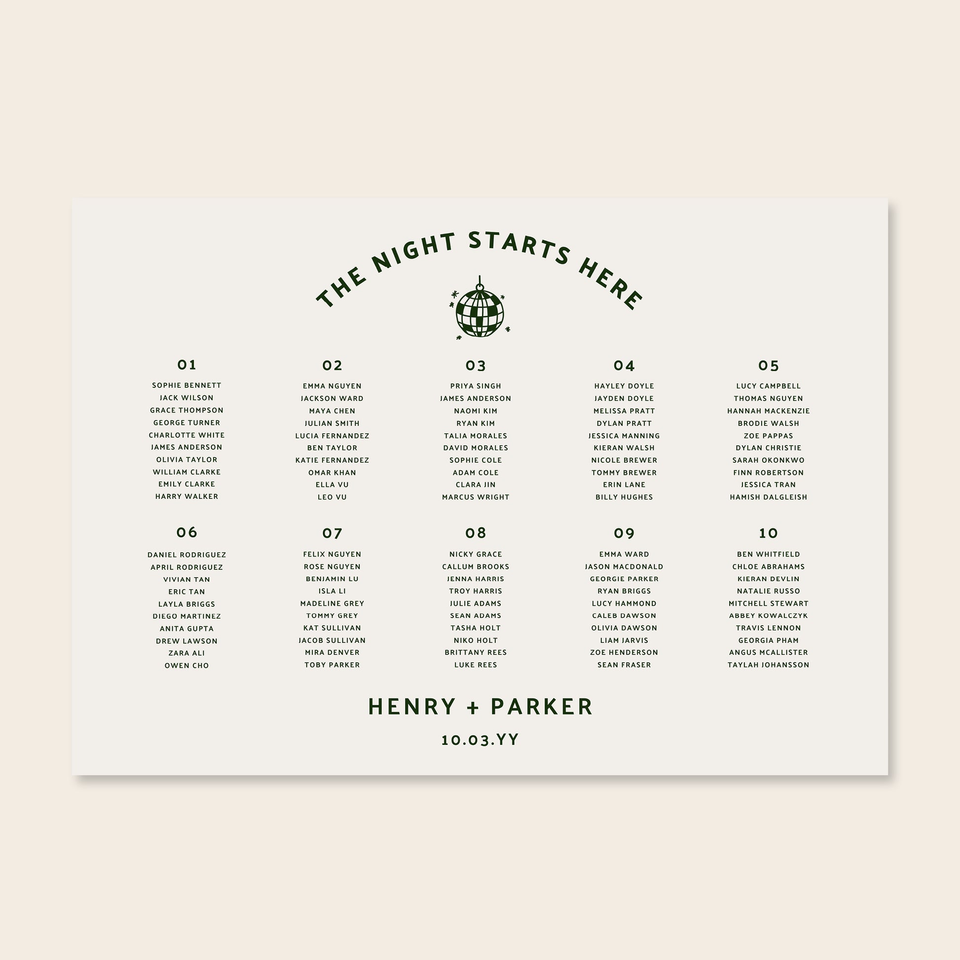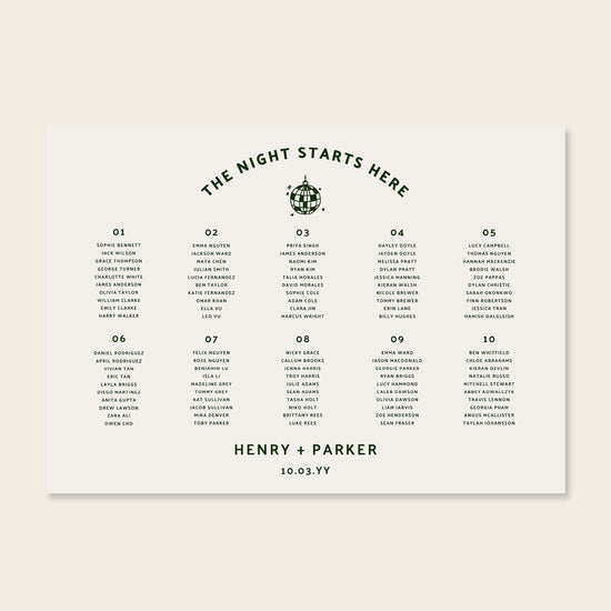 Lyra 10-Table Wedding Seating Chart Template (Landscape)