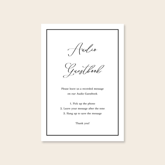 This editable audio guestbook sign template is the perfect way to guide your guests to leave heartfelt voice messages on your audio guestbook. A stylish, modern way to preserve personal moments and well wishes from your special day.