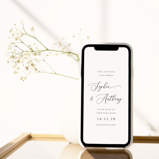 This editable digital save the date template includes three extra blank pages for any additional information you’d like to share.
