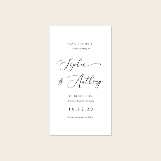 The Marais collection captures understated sophistication with its elegant serif and flowing script typography, creating a refined yet romantic atmosphere for your event.