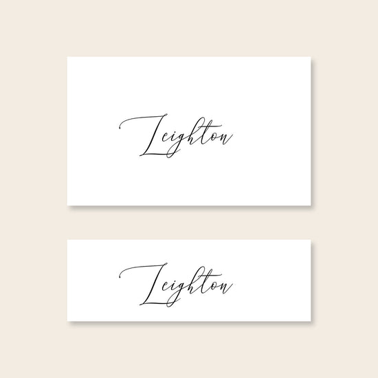 - Editable 90mm x 30mm flat place card template – A modern, minimalist size that’s perfect for personalising your menus.