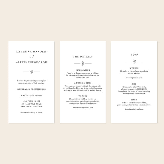 Melrose is inspired by sun-filled vineyard weddings and celebrates the beauty of simplicity and thoughtful design. With its soft serif type and unfussy layout, it brings a sense of calm elegance to your stationery.