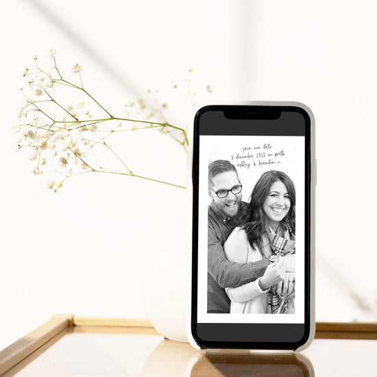 It’s easy to edit and can be downloaded to share via text, email, or alongside your own wedding website.