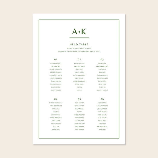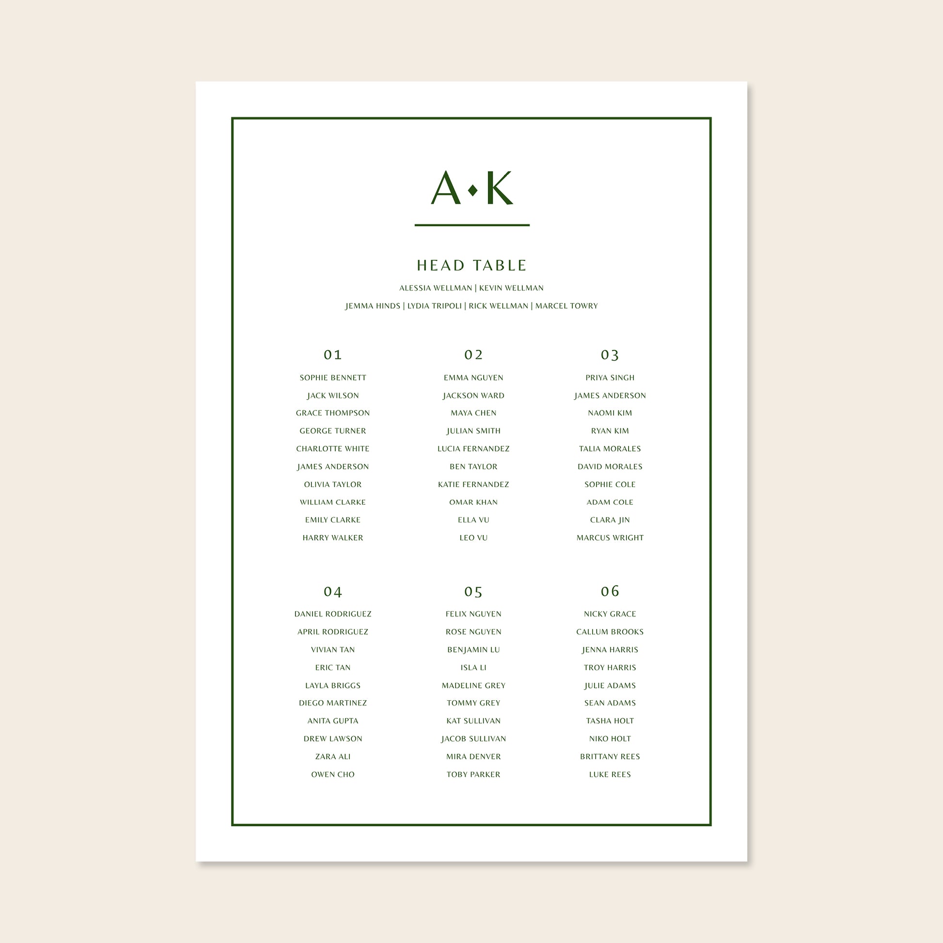 Easily design your own wedding seating chart in just a few clicks with this A1 and A2 template.