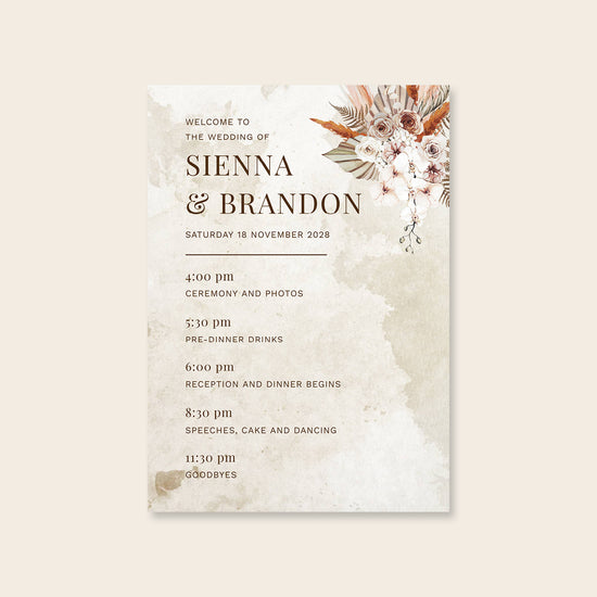 This editable order of events sign lets you share your wedding day schedule in a clear, stylish way—perfect for guiding guests through each part of your celebration.