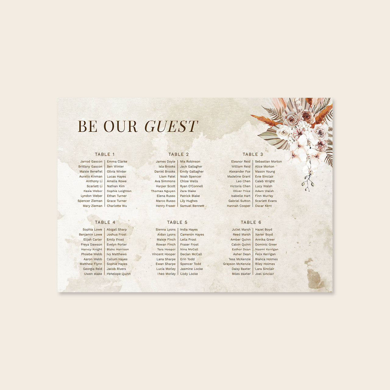 Solana Wedding Seating Chart Template (Long Tables) (Horizontal)