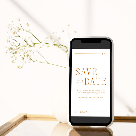 This editable digital save the date template includes three extra blank pages for any additional information you’d like to share.