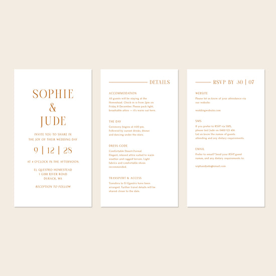 Inspired by the raw beauty of Western Australia's outback, Terra is our tribute to the ochre earth, sweeping plains, and golden hour glow of the Kimberley. Whether under open skies or a homestead veranda, Terra is designed for modern Australian celebrations.